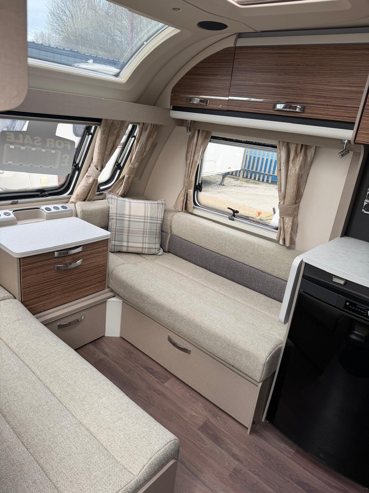 2020 Sterling Eccles 560 – a luxury 4-berth touring caravan offering a premium, well-balanced layout designed for comfort and effortless touring. Ideal for couples or families seeking a high-spec, spacious caravan with year-round usability. Fully serviced and ready to go, this model benefits from high-end heating and climate control.